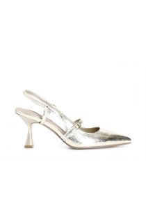 Décolleté with strap and lace at the back. the insole is in leather. shoe with a slim shape. the heel is 7 cm.