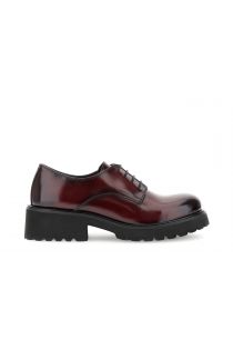 Lace-up leather Derby shoes with a glossy finish, a lug sole, and a 45 cm heel. Leather lining and insole for premium comfort. Bold and versatile style.
