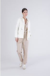 Women's spring down jacket with a fitted and feminine fit featuring an elegant diamond quilting. it features a front zip closure a drawstring waist for an adjustable fit long sleeves and a fixed hood. ideal for transitional weather. the model is 175 cm tall and wears a size s. fit: regular.