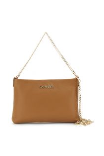 dollar leather clutch bag, shoulder strap and handle with chain and snap hooks tan