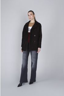 Short, double-breasted pea coat in flocked fabric with a unique texture. A casual and sophisticated outerwear piece, perfect for facing the winter with style and a comfortable fit. The model is 173 cm tall and wears a size S.