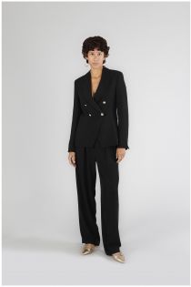 Double-breasted jacket made of fluid technical fabric. transversal closure. it is possible to combine the jacket with trousers in the same fabric. model that stands out for its perfect fit and unique and versatile style.