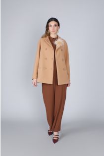 Short, double-breasted coat with raglan sleeves and a clean cut. Embellished with a feather brooch, it combines comfort and style for a refined, trendy casual look. Regular fit. The model is 173 cm tall and wears a size S.