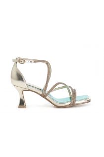 Sandals closed at the back and double criss-crossed with rhinestones. heel h. 70mm
