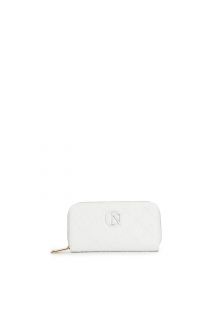 Double zip-around wallet with all-over embossed logo and tone-on-tone logo.