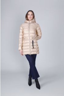 down jacket with hood in iridescent fabric sand