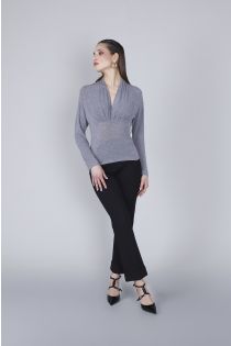 Long-sleeved, draped-neck T-shirt made of soft viscose and cashmere jersey. Casual style and regular fit, perfect for any occasion. The model is 172 cm tall and wears a size S.