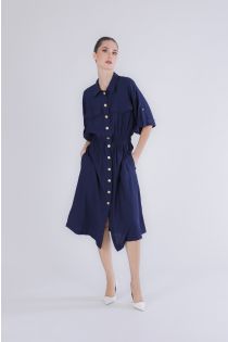 Flowing shirt dress with kimono sleeves and an elasticated waist designed to flatter the figure. elegant and versatile ideal for everyday looks or refined daytime outfits. the model is 175 cm tall and wears a size s. comfort fit.