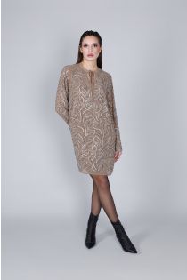 dress with rhinestone embroidery multibeige