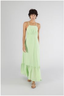Long sundress model dress with deep neckline at the back and flounce at the hem. dress made of an elegant silk blend muslin. this dress with a simple and clean line is a perfect mix of romance and refinement that will ensure a classy and bon ton look.