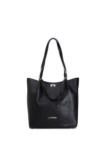 dual fabric shopping bag with fastening accessory and cafènoir charm black/rock