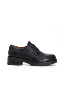 Easy fit, leather derby shoes with studs. The fit is facilitated by the stretch panel on the front of the tongue.