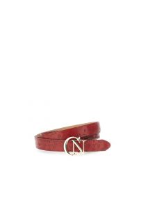 embossed flower print leather belt red