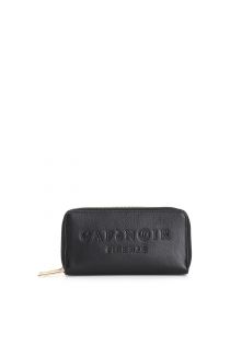 embossed logo zip around wallet black