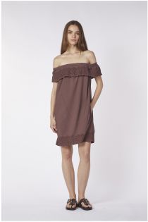 Cotton dress with embroidery on the bottom and flounce. large boat neckline. ideal for hot days or for spending a few hours at the seaside.