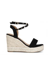 fabric sandals with studs on cord wedge black