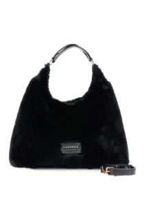 faux fur bag with shoulder strap and logo black