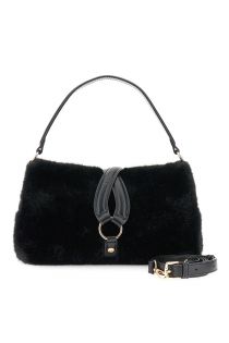 faux fur shoulder bag with ring black