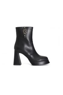 Women's leatherette ankle boot with cafènoir pendant. footwear in perfect seventies style. the 95mm high heel together with the 18mm platform provide a balance of height beauty and comfort.