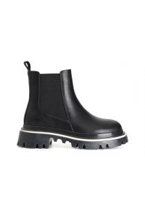 Women's leatherette ankle boot. side stretch panel to make them easier to put on. rubber sole 40 mm heel.