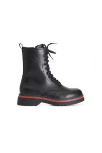 Women's black leatherette lace-up ankle boot. rubber sole with red band 40 mm heel.