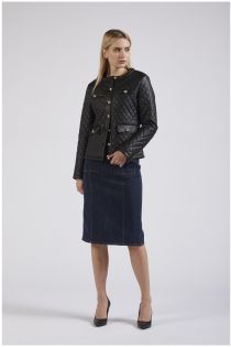 Padded long-sleeved leatherette jacket with precious logo buttons.