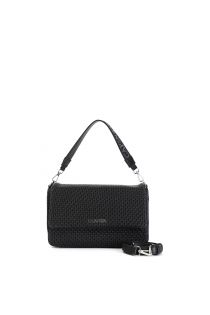 Matelassé-effect flap. handle with cafènoir rhinestone lettering. magnetic closure. bag with adjustable shoulder strap.