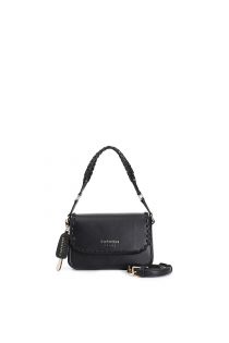 flap bag with threading, braided handle, ice cream charm and shoulder strap black