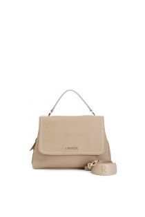 flap with charms and shoulder strap sand
