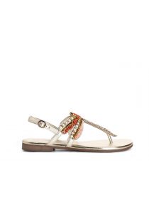 Flip-flop sandals with dragonfly-shaped applications. lining and insole are in leather. the heel is 2 cm high. comfortable to wear and easy to match.