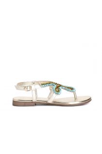 Flip-flop sandals with embroidery and applications. lining and insole are in leather. the heel is 2 cm high. comfortable to wear and easy to match.