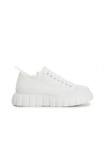 Lace-up sneakers with fringed fabric raised sole decorated with a striped pattern. model distinguished by a rubber toe cap that decorates the shoe.