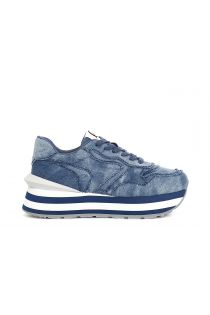 Lace-up sneakers in fringed fabric. round tip. 4 cm two-tone sole. functional sneakers that give added value to every outfit.