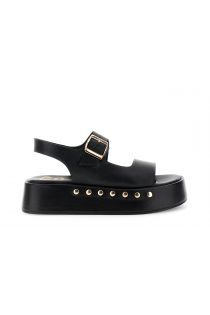 friar sandals in nappa leather with studs on the wedge black