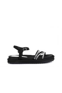 friar sandals with rhinestones black