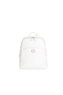genuine textured leather backpack with front pocket white