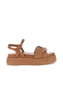 gilda sandal in woven synthetic and wedge brown