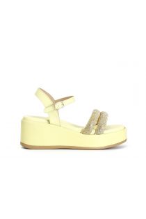 gilda sandals with wedge and double rhinestone strap yellow