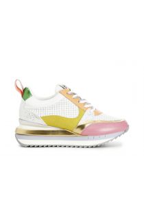 Lace-up sneakers with glitter fabric running sole with insert matching the colour of the upper.