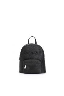 Black glitter backpack with zip. embroidered cafènoir logo. pocket with front zip. adjustable shoulder straps.