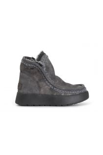 Women's ankle boot made of glittery suede with pretty threading as detailing. faux fur lining.