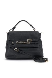 Grained faux leather flap bag with strap and buckle details and Café Noir lettering. Internal zip compartment and removable shoulder strap.