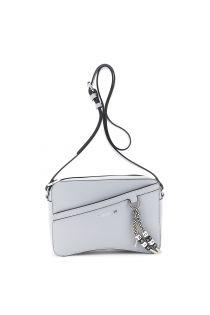 grainy leather-effect camera bag with colorful logo charm sky