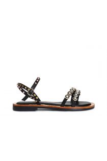 Gilda model sandals in nappa with studs and rhinestones. the lining and insole are in leather. the heel is high h. 1.5 cm. comfortable shoe even after several hours of use and perfect to combine with multiple looks.