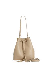 hammered leather bucket bag biscuit