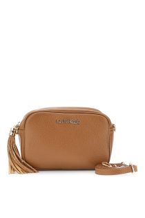 Hammered leather camera bag with side tassel and removable shoulder strap with snap hooks. Compact yet roomy, it's perfect for casual and refined looks.