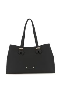 hammered leather-effect shopping bag with smooth contrasting details black
