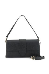 Hammered leather shoulder bag with an elegant and functional design. a front flap with a secure closure short handle and removable shoulder strap offer versatile style perfect for day and evening. dimensions: 25.5 cm (length) × 13 cm (height) × 6.5 cm (depth)