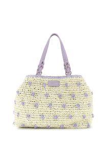 hand-knit crochet shoulder tote with magnetic and snap-hook closure milk/lilac
