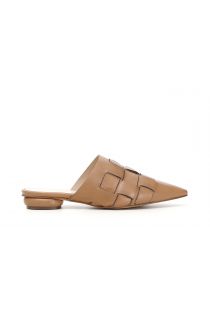Very trendy, slim sabot made of manually braided leather, with low heel.
